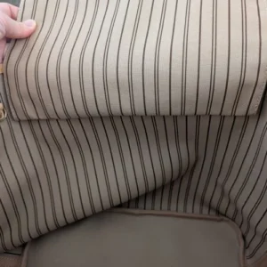 If you take a closer look at my Neverfull, you’ll notice that the bottom edge of the V-shaped stitching is double-stitched. This small detail is a good indicator of an authentic bag.